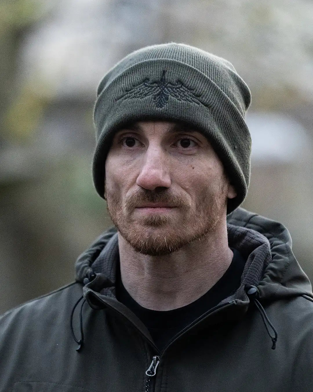 This soft, recycled beanie features a minimal embroidered raven, bringing a subtle hint of Nordic and folkloric symbolism to your winter wardrobe.