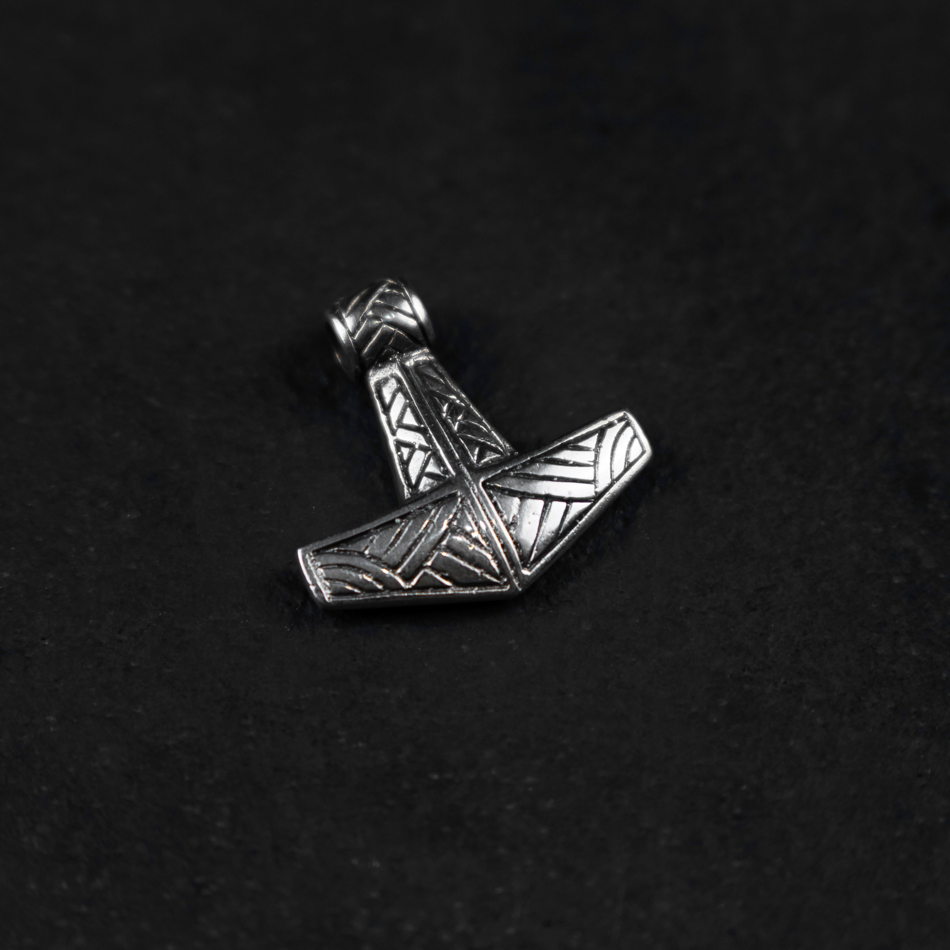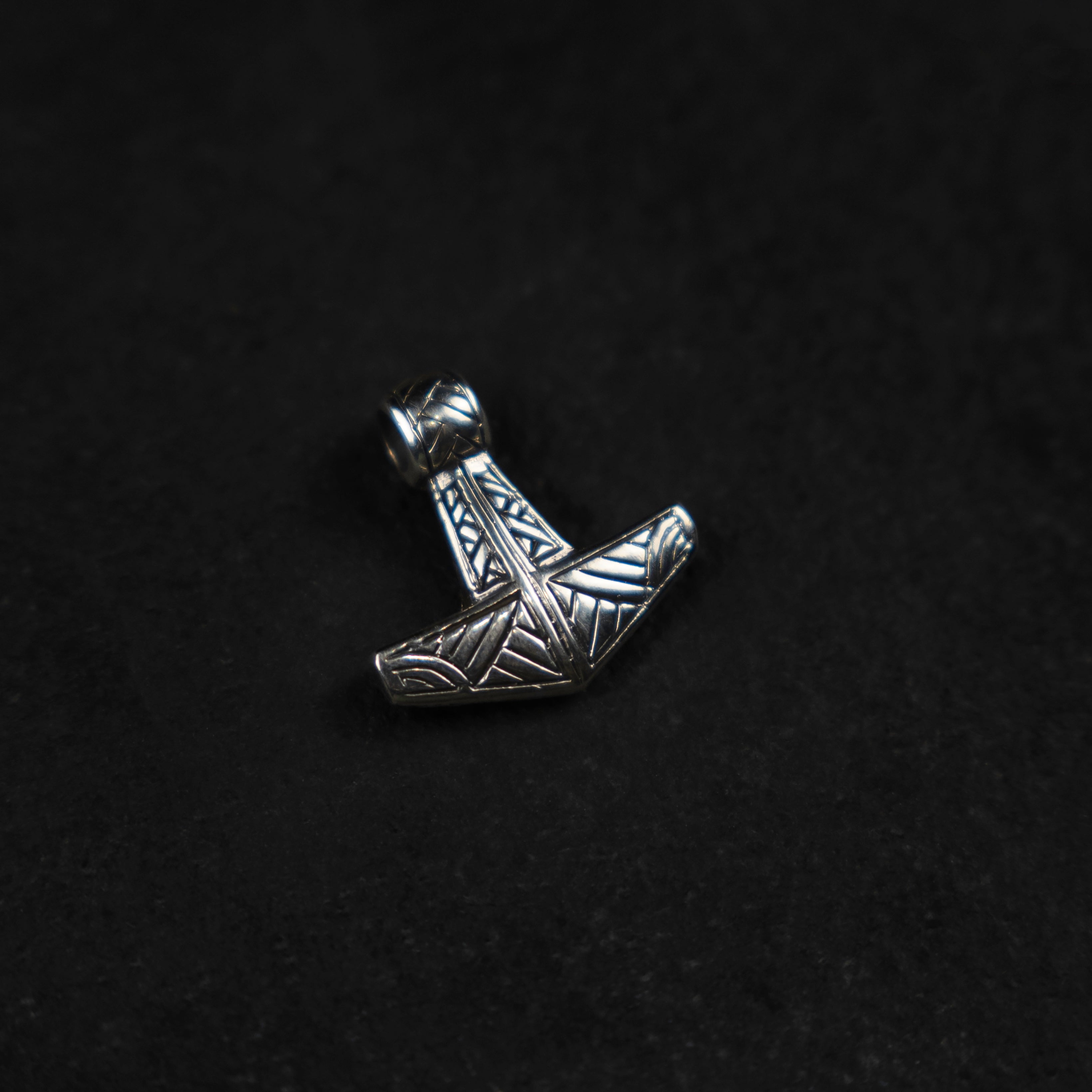 This patterned Thor’s Hammer (Mjölnir) is inspired by Viking Age amulets worn across Scandinavia between 800–1100 AD. According to legend, the hammer was forged by the dwarf Sindri, capable of paralysing enemies and always returning to Thor’s hand - a symbol of power, resilience, and unwavering faith in the old gods.