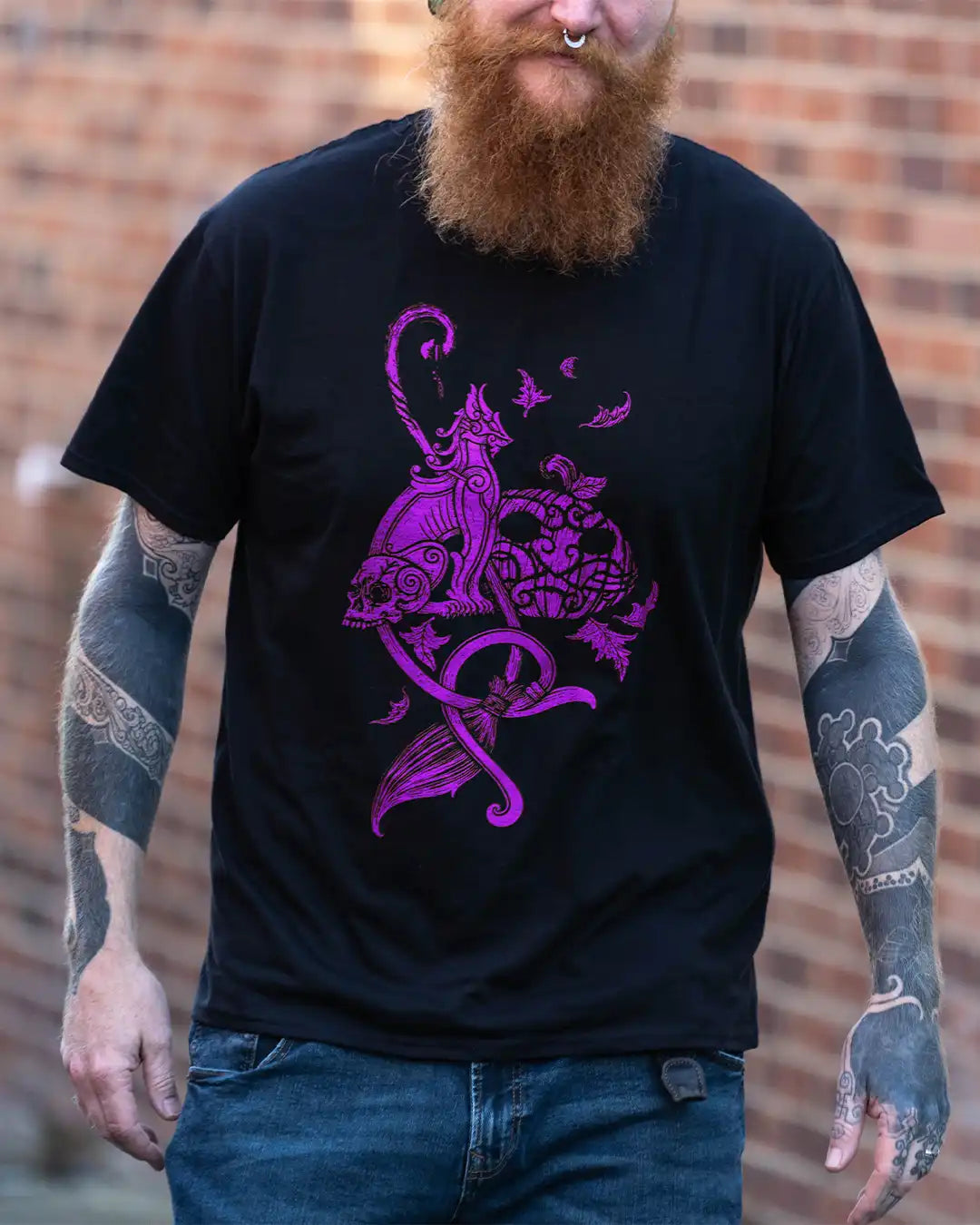 Created for the turning of the year, the Álfablót T-Shirt channels the spirit of Viking-age ritual, Samhain, and old-world magic. Printed on black unisex cotton, the design is available in orange or purple - colours of firelight and shadow.